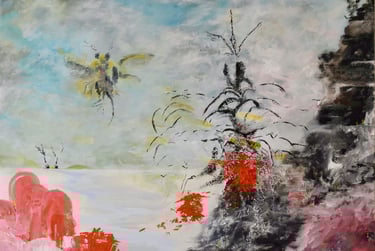De natuur - en vooral water, lucht en Wad - is mijn inspiratiebron, aangevuld met elementen uit sagen en mythen. Ik zie elk schilderij als een ballade, het vertelt zijn eigen verhaal en ademt een eigen sfeer, van fantastische, suggestieve vormen en dromerige landschappen tot expressieve kleurensensaties. Als je naar mijn schilderijen kijkt, zie je flarden van de werkelijkheid, dagdromen die vorm hebben gekregen: een suggestie van bestaande dingen die niet bestaan ........